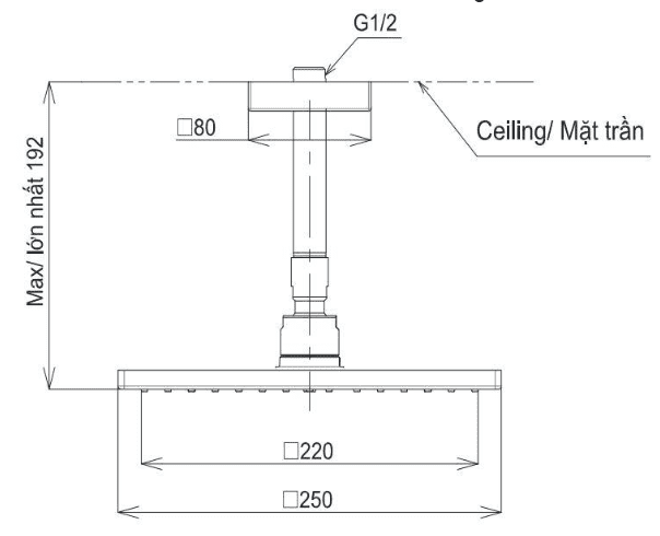 Hơn thế, sản phẩm này còn được thiết kế với kích thước 250mm, giúp tạo ra một vùng tắm rộng và thoải mái. Bạn sẽ có đủ không gian để thư giãn và tận hưởng trọn vẹn những tia nước mát lạnh. Đặc biệt phù hợp với đa số không gian phòng tắm trong mọi công trình khác nhau.