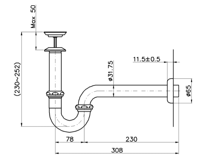 - Dành cho sản phẩm chậu rửa có tâm cách tường nhỏ hơn 308mm.