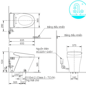 Bản vẽ kỹ thuật của Bồn Cầu Điện Tử INAX AC-618VN