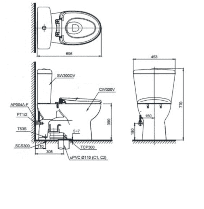 Bản vẽ kỹ thuật Bồn cầu điện tử TOTO CS300DRW16#W