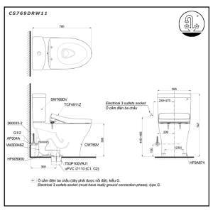 Thông số kỹ thuật Bồn cầu điện tử TOTO CS769DRW11#XW