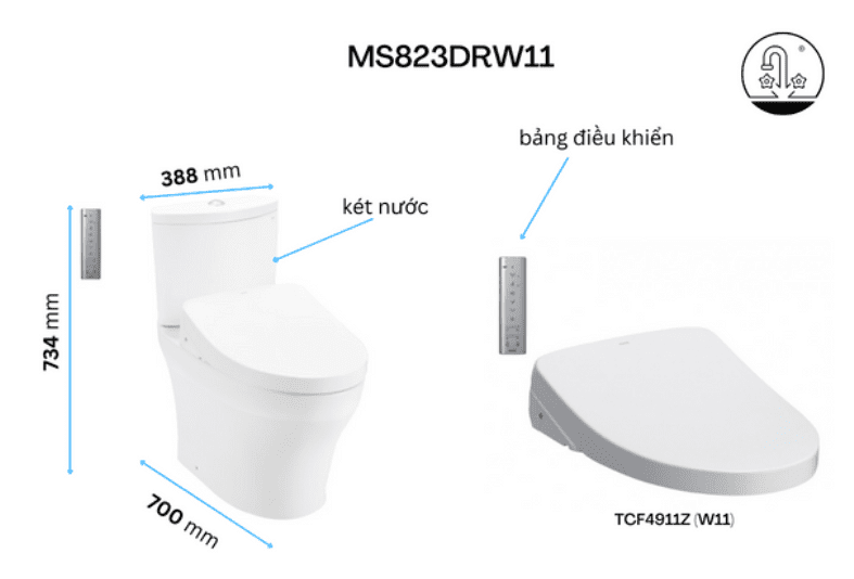 Thông tin bồn cầu TOTO 2 khối nắp rửa điện tử CS838DW11