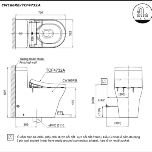 Thông số kỹ thuật Bồn cầu điện tử TOTO CW166RB#XW/TCF4732A#NW1/T53P100VR