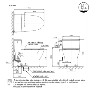 Bản vẽ kỹ thuật Bồn cầu điện tử TOTO MS188VKW7#XW/T53P100VR