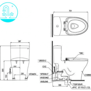 Bản vẽ kỹ thuật Bồn cầu điện tử TOTO MS855DW6#XW
