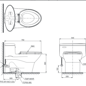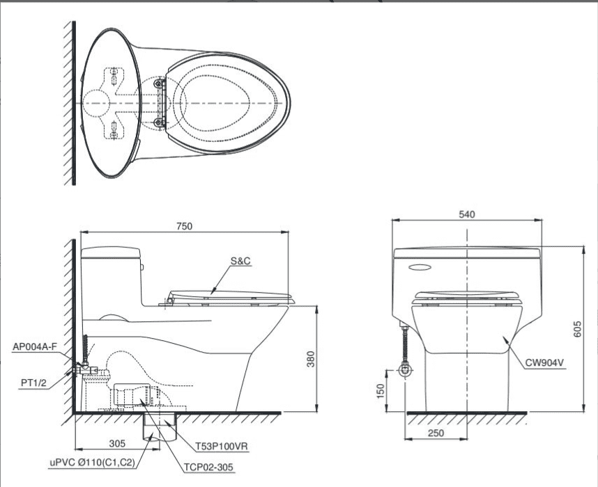 Bản vẽ kỹ thuật Bồn cầu điện tử TOTO MS904W6#XW