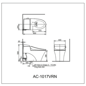 Bản vẽ kỹ thuật Bồn Cầu INAX AC-1017VRN 1 Khối