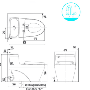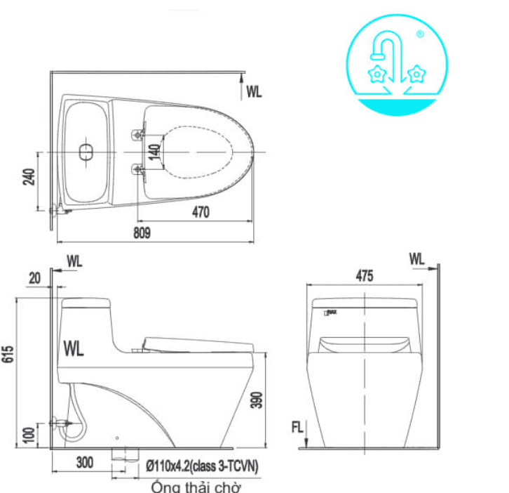 • Nắp bồn cầu: CF-3003VS, tương thích với nắp rửa cơ và nắp điện tử