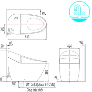 | Khoảng cách tâm xả cách tường | 300 mm |
