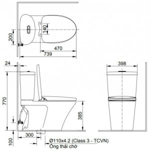 Bản vẽ kỹ thuật bàn cầu INAX AC-700VAN