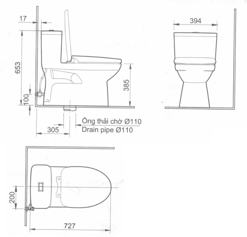 - Tâm thoát sàn: 300 mm (±5 mm)