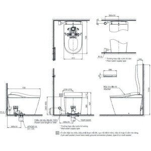- Tích hợp chức năng tự động đóng/mở nắp, sưởi ấm nắp ngồi, khử mùi, sấy khô
