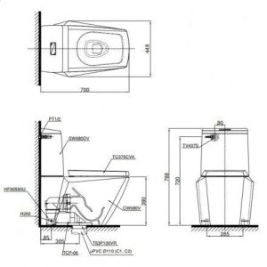 • Tâm xả tiêu chuẩn 305 mm và kích thước 700 x 448 x 788 mm giúp dễ dàng lắp đặt trong hầu hết các không gian phòng vệ sinh phổ thông, kể cả căn hộ hoặc nhà phố diện tích hạn chế.