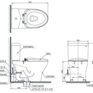 - Tên sản phẩm: Bồn cầu 2 khối TOTO