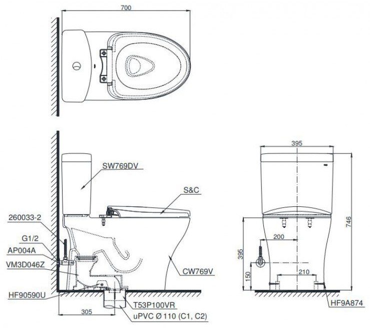 - Phù hợp lắp đặt với nắp rửa điện tử WASHLET (tùy chọn)
