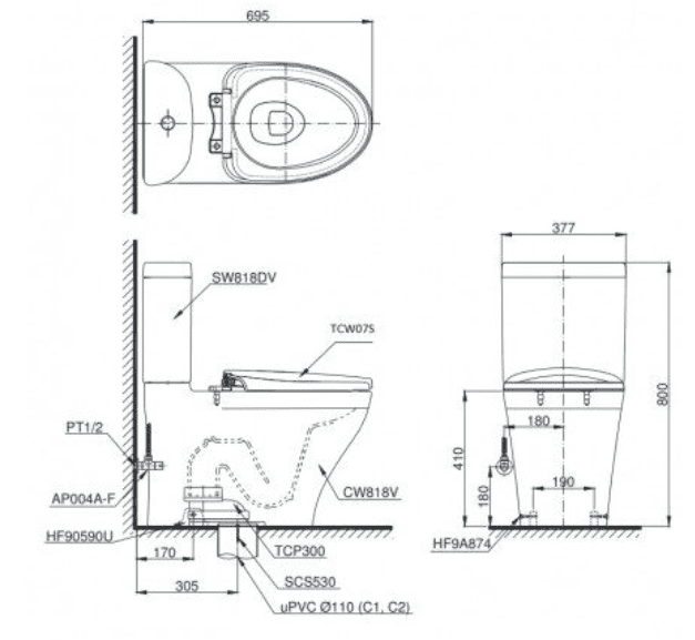 - Sau đây là bản vẽ kỹ thuật cảu chiếc xí bệt đẳng cấp này. Bạn nên tham khảo bản vẽ dưới đây trước khi lắp đặt nhé