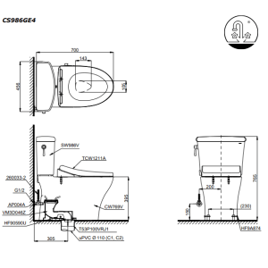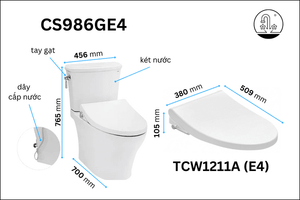Thông số kỹ thuật Bồn cầu TOTO CS986GE4#XW 2 khối nắp rửa cơ TCW1211A