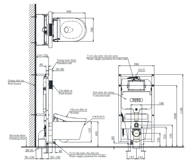 - Bồn Cầu TOTO CW553C#XW/TCF33370GAA#NW1/WH172AT/TCA465 Treo Tường là sản phẩm bồn cầu treo tường TOTO dáng chữ D, loại giấu dây