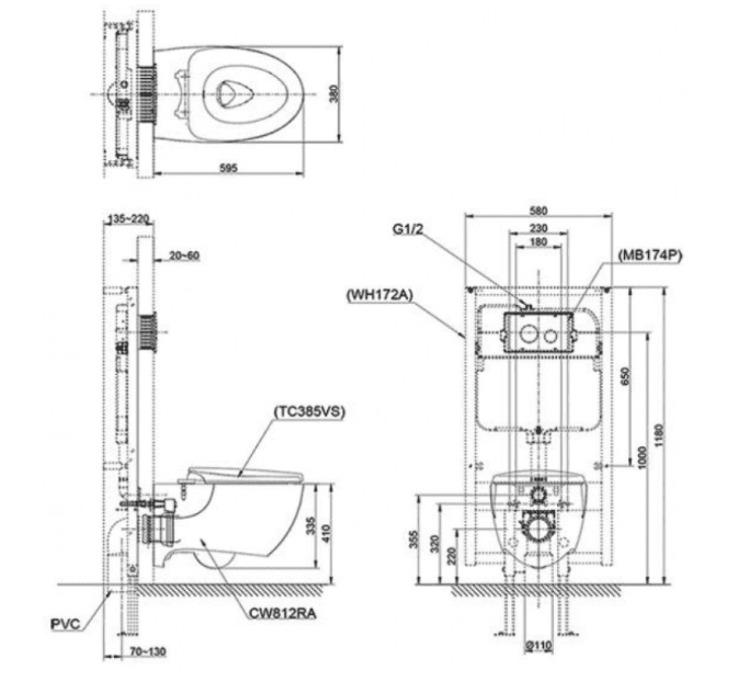 - Chưa bao gồm két nước âm tường và nút nhấn