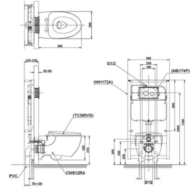 - Chưa bao gồm két nước âm tường và nút nhấn