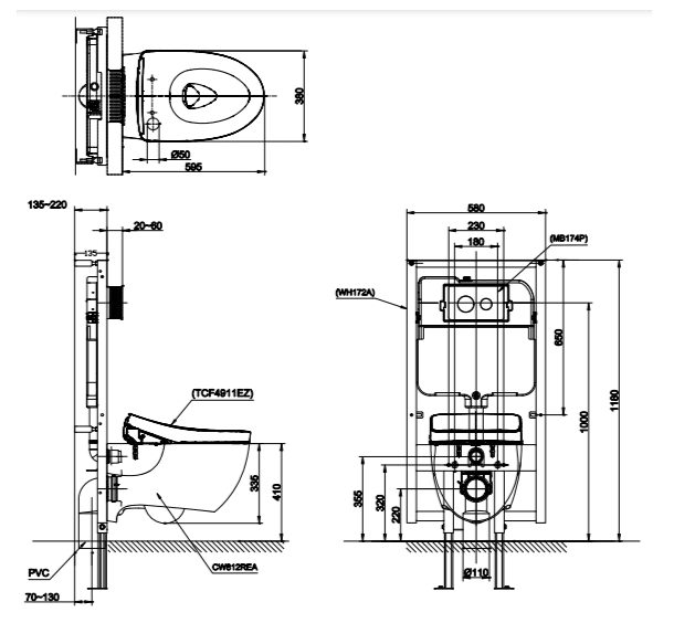 Bản vẽ Bồn Cầu TOTO CW812REA#W/TCF24460AAA#NW1/WH172AT/TCA465