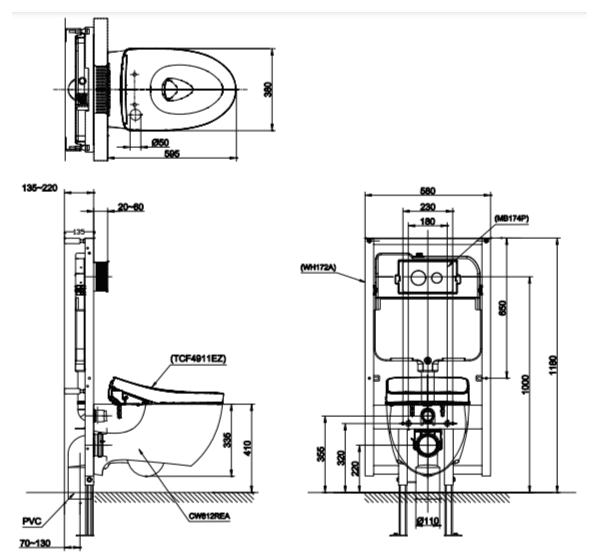 - WH172AAT: Két nước dành cho bàn cầu treo tường giấu dây, có chức năng tự động xả