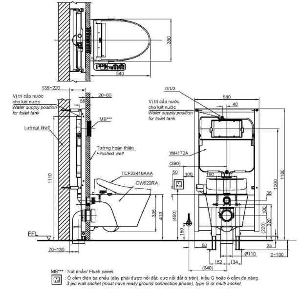 Danh mục: Thiết Bị Vệ Sinh / Bồn Cầu / Bồn cầu TOTO / Bồn Cầu Treo Tường TOTO