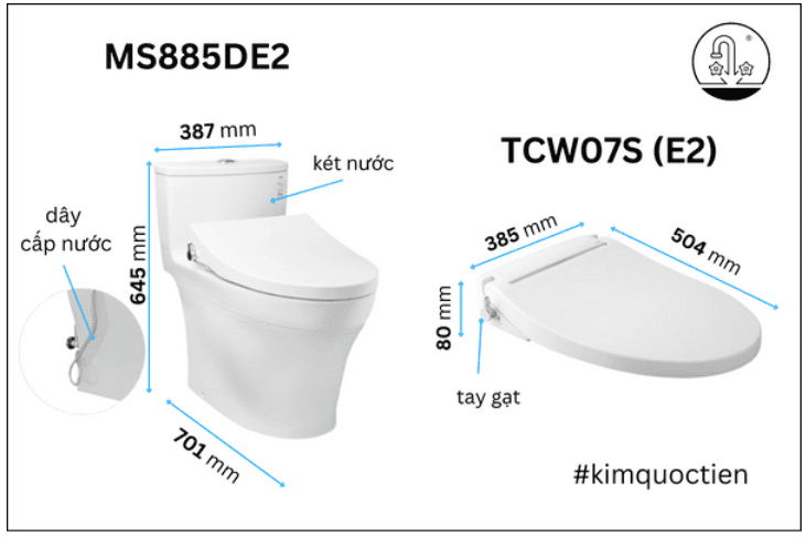 - Đặc biệt, MS885DE2 có thể lắp đặt linh hoạt với cả thân cầu dáng tròn và dáng dài, đồng thời tương thích với nắp điện tử WASHLET nếu người dùng muốn nâng cấp tính năng.