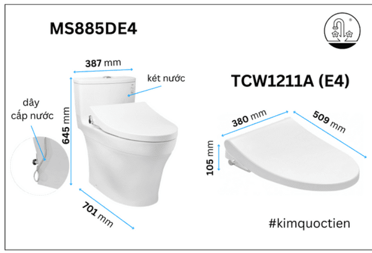 Thông tin cơ bản bồn cầu TOTO MS885DE4 nắp rửa cơ