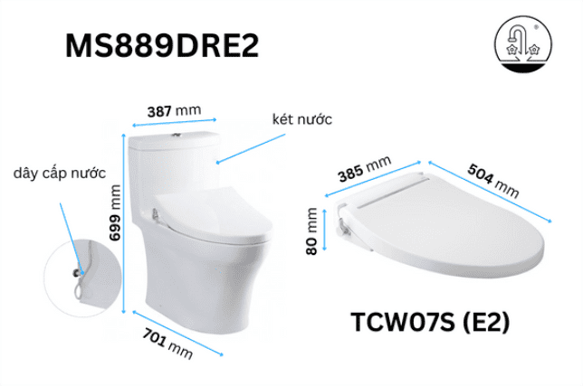 Thông số kỹ thuật Bồn cầu TOTO MS889DRE2#XW 1 khối nắp rửa cơ TCW07S