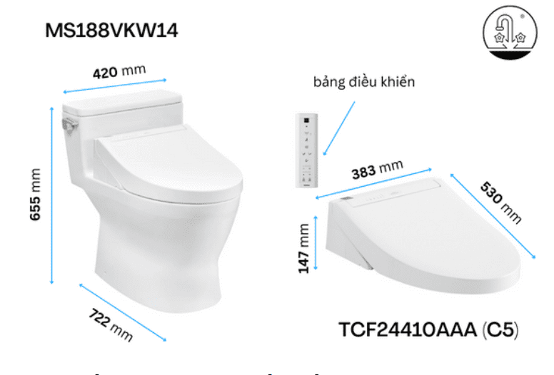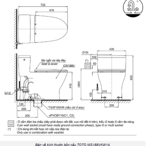 Thông số kỹ thuật Bồn cầu WASHLET TOTO MS188VKW14 nắp điện tử TCF24410AAA