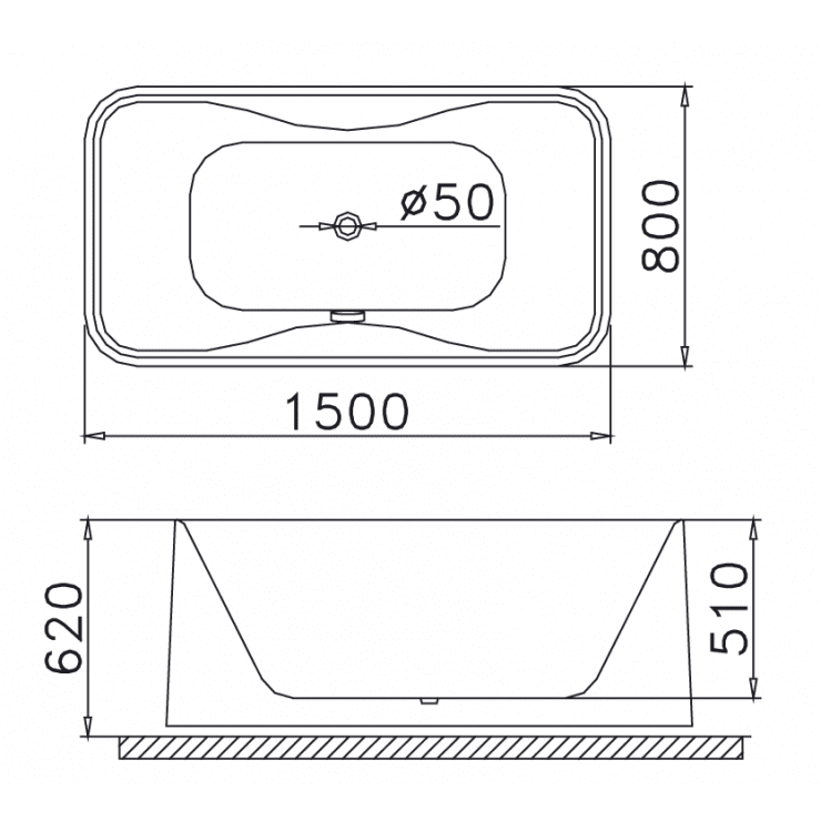 - Kích thước rộng rãi: Kích thước 1500 x 800 x 620 (dài x rộng x cao) cho phép bạn thoải mái ngâm mình và thư giãn.