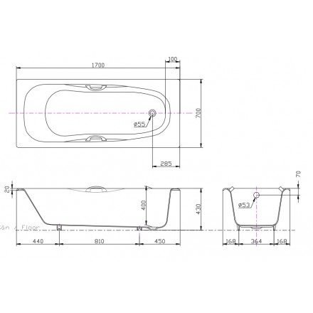 - Tên sản phẩm: Bồn tắm gang tráng men đặt sàn
