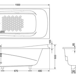 Bản vẽ hỗ trợ lắp đặt Bồn Tắm TOTO PPY1560PE#P/DB501R-2B màu ngọc trai