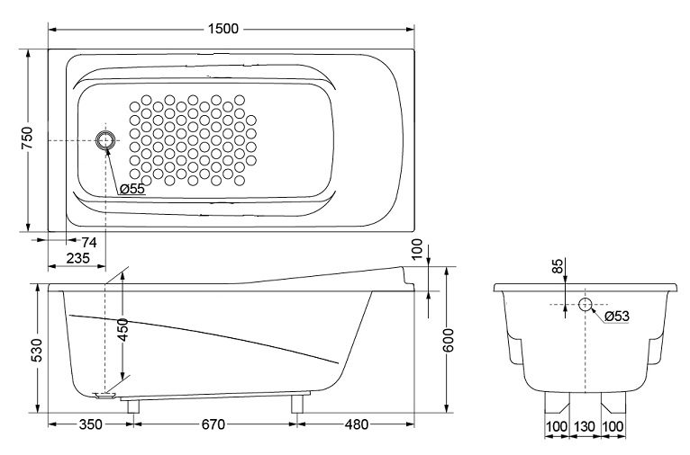 - Kích thước: 1500x750x600 mm