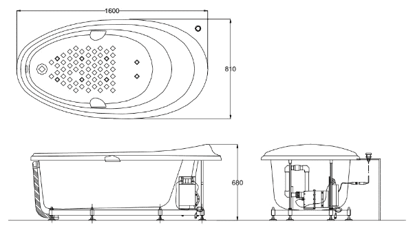 Bản vẽ Bồn Tắm TOTO PPYB1610LHPTE#S