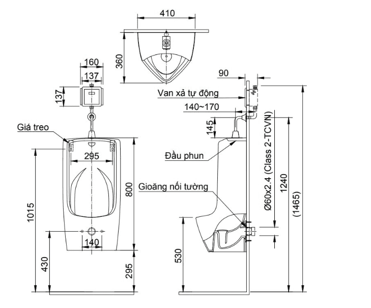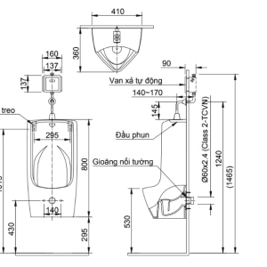 Thông Số Kỹ Thuật Của Bồn Tiểu Nam INAX AU-411V Treo Tường Men Chống Bám Bẩn