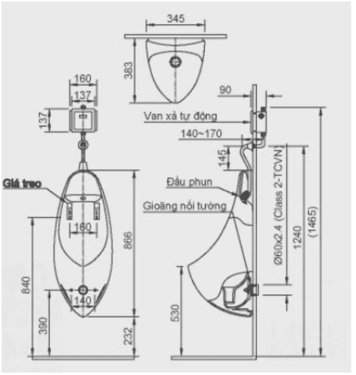 Van xả tiểu nào lắp vừa Bồn tiểu nam inax này