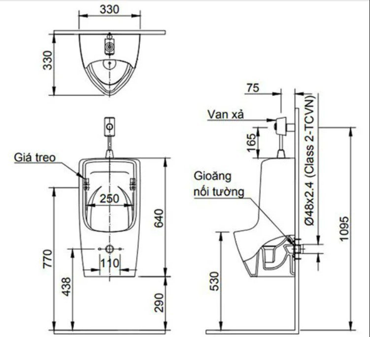Dưới đây là thông số kỹ thuật của Bồn Tiểu Nam INAX AU-431VAC Treo Tường Men Chống Bám Bẩn