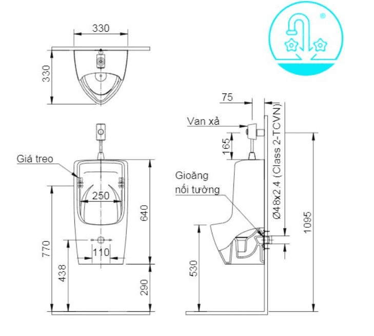 - Áp lực nước: 0.05 MPa ~ 0.75 MPa