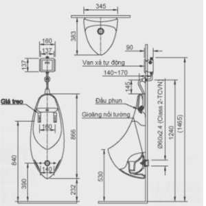 Thông Số Kỹ Thuật Của Bồn Tiểu Nam INAX U-417V Treo Tường
