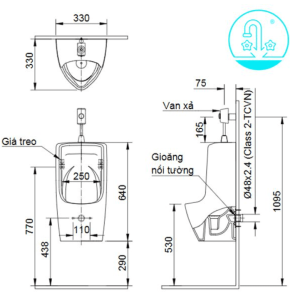 Để việc lắp đặt dễ dàng, bạn cần chú ý đến chiều cao đường cấp, độ rộng lỗ thoát, khoảng cách đường cấp đến trên cùng của bồn tiểu, và lựa chọn loại van xả phù hợp. Hãy xem bản vẽ kỹ thuật bên dưới để có cái nhìn chi tiết hơn.