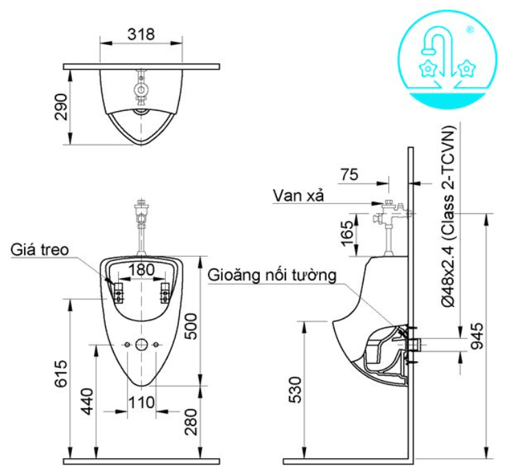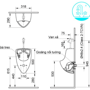 • Phân loại: Bồn tiểu treo tường