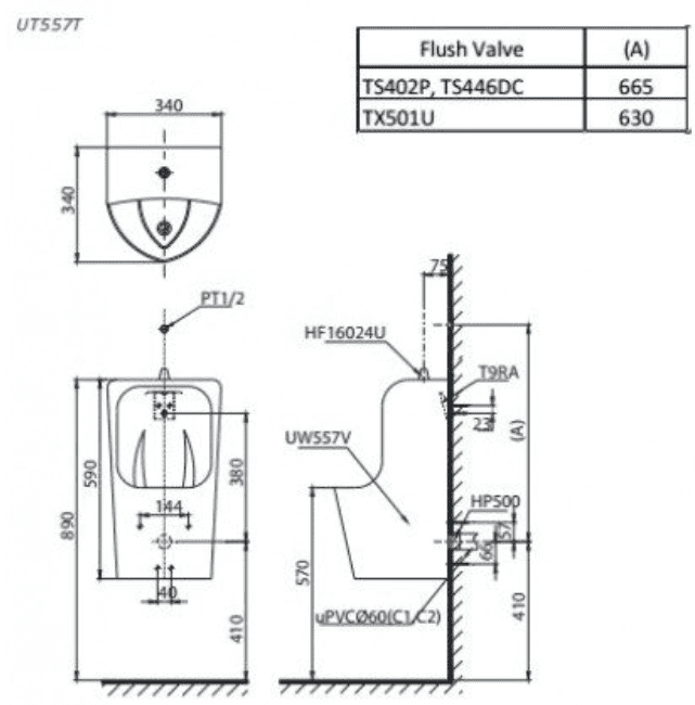 Thông tin chi tiết của tiểu nam TOTO UT557T