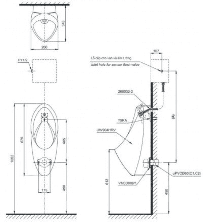 Với dòng tiểu nam này, thì chỉ sử dụng được với các mẫu van xả cảm ứng: DUE126UPK, DUE126UK, DUE126UPE, DUE126UE.