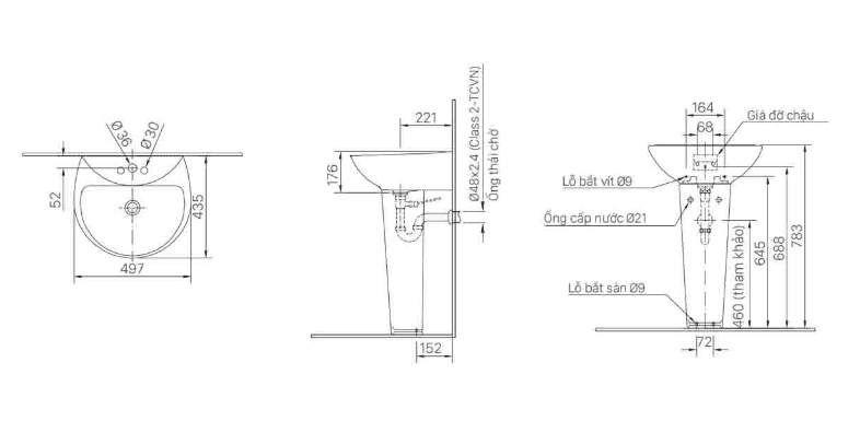 Dưới đây là thông số kỹ thuật của Chân Dài Lavabo INAX L-288VD