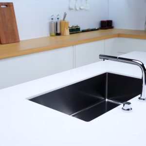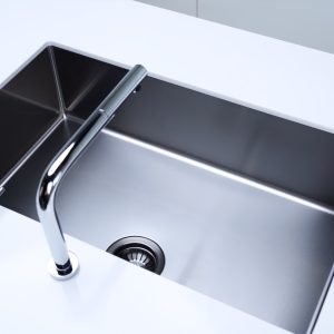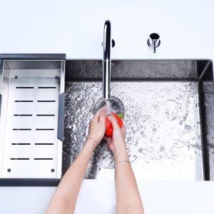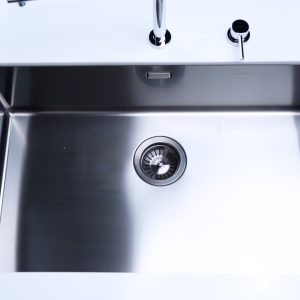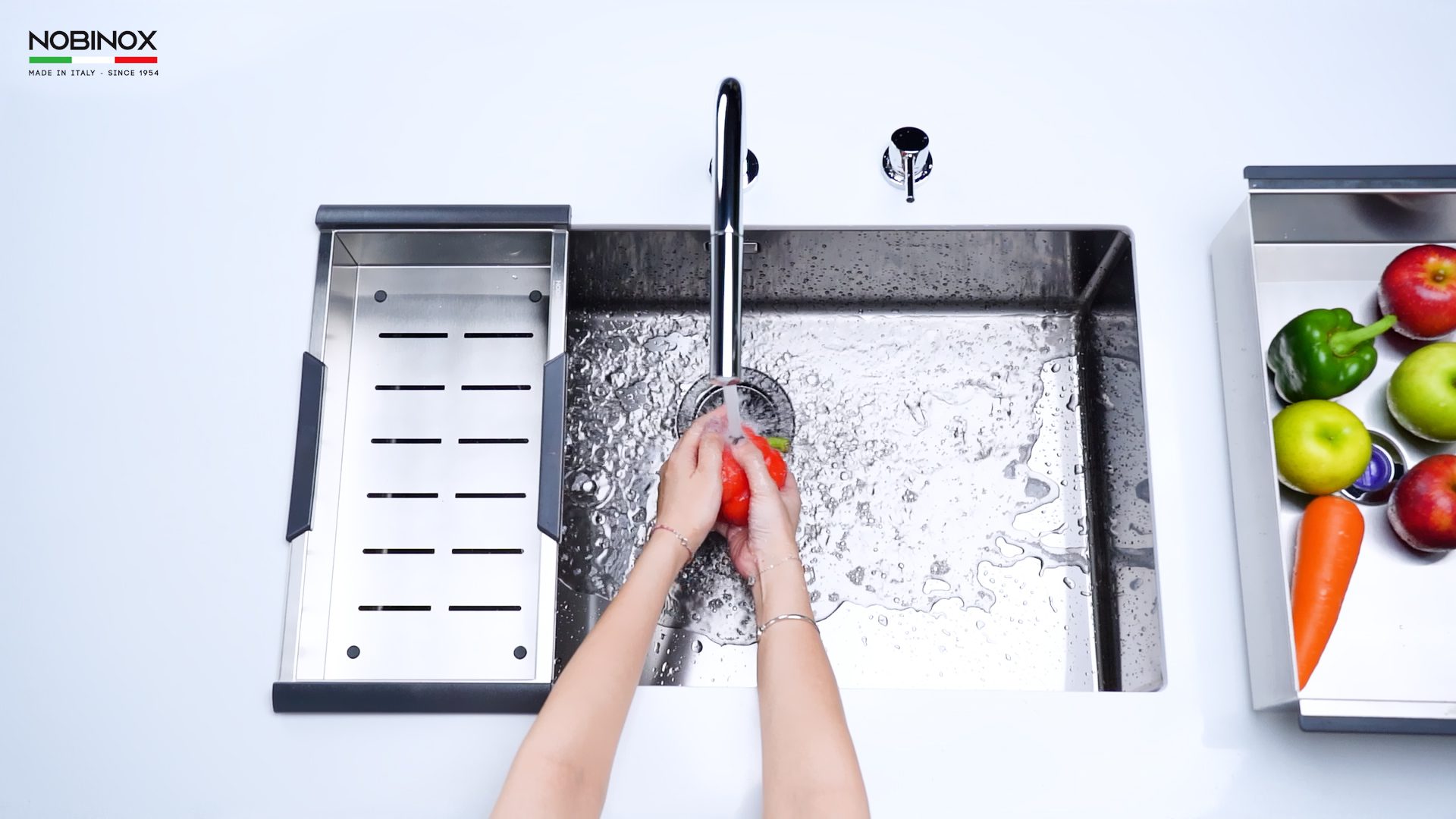 Bề mặt chậu được xử lý bằng công nghệ SATINPLUS, tạo độ sáng bóng vượt trội, mềm mại và đồng nhất trên toàn bộ sản phẩm. Chậu có thể lắp đặt âm hoặc bán âm, đi kèm nhiều phụ kiện tiện ích, giúp công việc bếp núc trở nên nhẹ nhàng hơn. Lỗ thoát tràn được thiết kế liền mạch, giúp vệ sinh dễ dàng và an toàn. Các góc lượn bo tròn cũng góp phần làm sạch chậu nhanh chóng.
