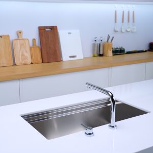 Gờ trượt này cho phép các phụ kiện như giá đỡ, khay rửa và thớt có thể di chuyển dễ dàng, giúp bạn tận dụng tối đa không gian và nâng cao hiệu quả sử dụng trong quá trình nấu nướng và dọn dẹp.