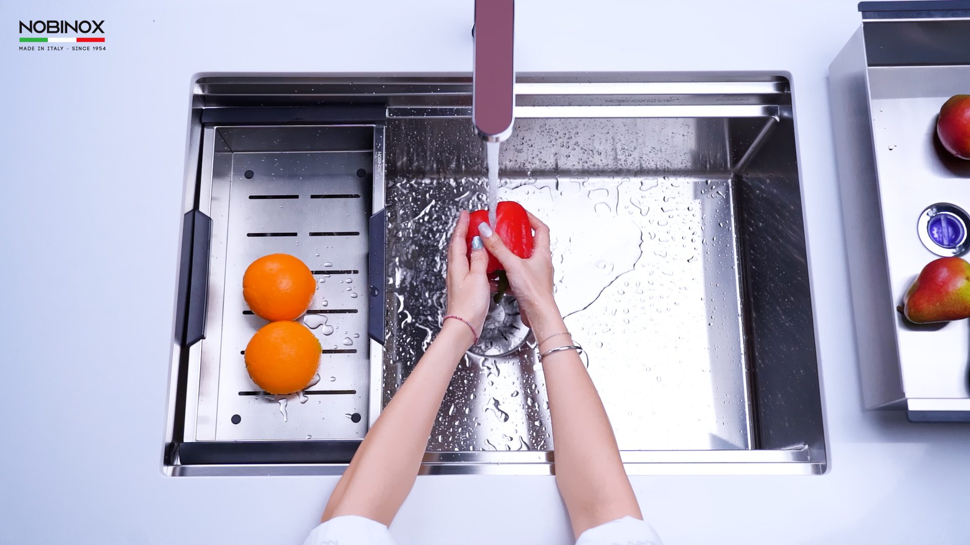 Lòng chậu sâu giúp tăng dung tích và hạn chế bắn nước. Thiết kế góc lượn bo tròn giúp việc vệ sinh trở nên dễ dàng. Chậu có độ dày 1.0mm, đảm bảo sự chắc chắn và bền bỉ tuyệt đối. Hệ thống xi phông được sản xuất 100% tại Ý từ nhựa cao cấp, an toàn, chống tắc nghẽn và ngăn mùi hôi hiệu quả.