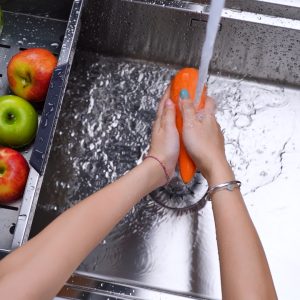 Chậu được chế tạo từ vật liệu AISI 304 18/10 cao cấp, không chì, đảm bảo an toàn cho sức khỏe và độ bền vượt trội